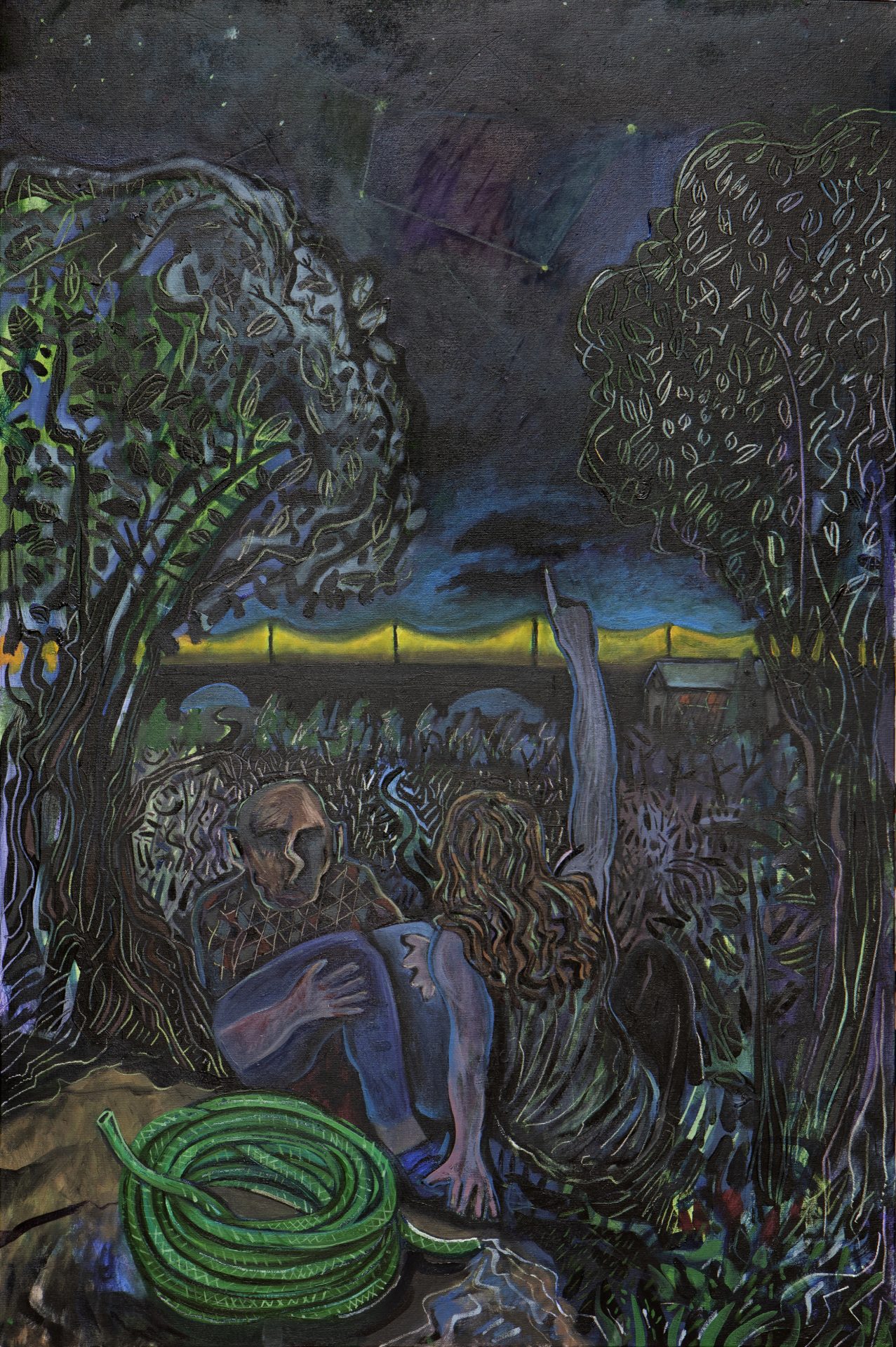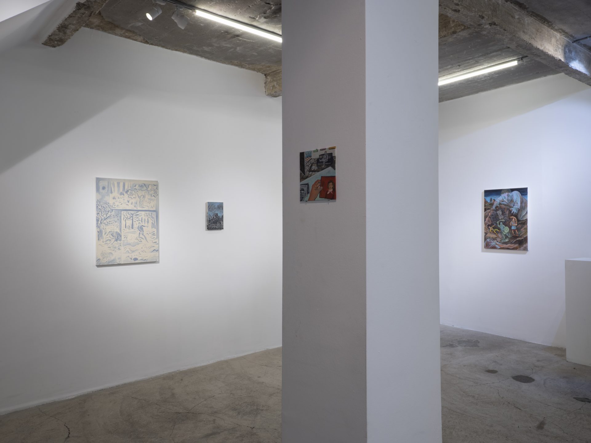 Toygun Özdemir (1986, Izmir), received his bachelor’s degree in painting from Mimar Sinan University’s Faculty of Fine Arts. Based in Istanbul since then, Özdemir adopts a flexible stylistic approach, and this characteristic fluidity also applies to the subject matter of his paintings. In his landscapes, the artist reflects the flux in nature through the liquidity of paint. In his figurative work, he conjures up characters enmeshed in the complexity of the 21st century, rendering them in absurd and paradoxical situations that are reflective of the artist’s idiosyncratic dark humor. He has had four past one-person exhibitions at Öktem Aykut; Golden Age (2022); Happy-Go-Lucky (2019); Stranger (2016) and Complete Paintings (2016).